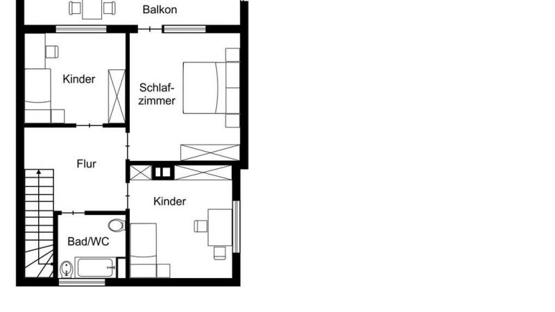 Über den ansprechenden Treppenaufgang erreichen Sie das Obergeschoss mit drei gut geschnittenen Zimmern, die sich optimal als Schlaf-, Kinder- oder Arbeitszimmer eignen. Das Hauptschlafzimmer verfügt über einen direkten Zugang zum Balkon. Ergänzt wird diese Etage durch ein Tageslichtbad mit Badewanne und Dusche.